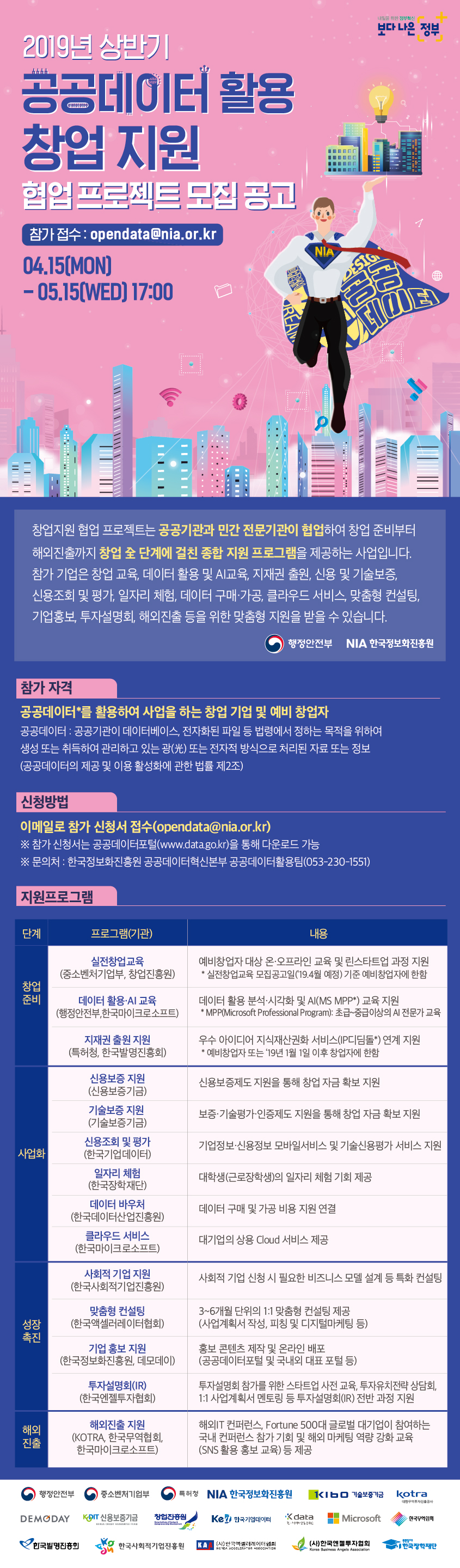 2019년 상반기 공공데이터 활용 창업 지원 협업프로젝트 모집 공고