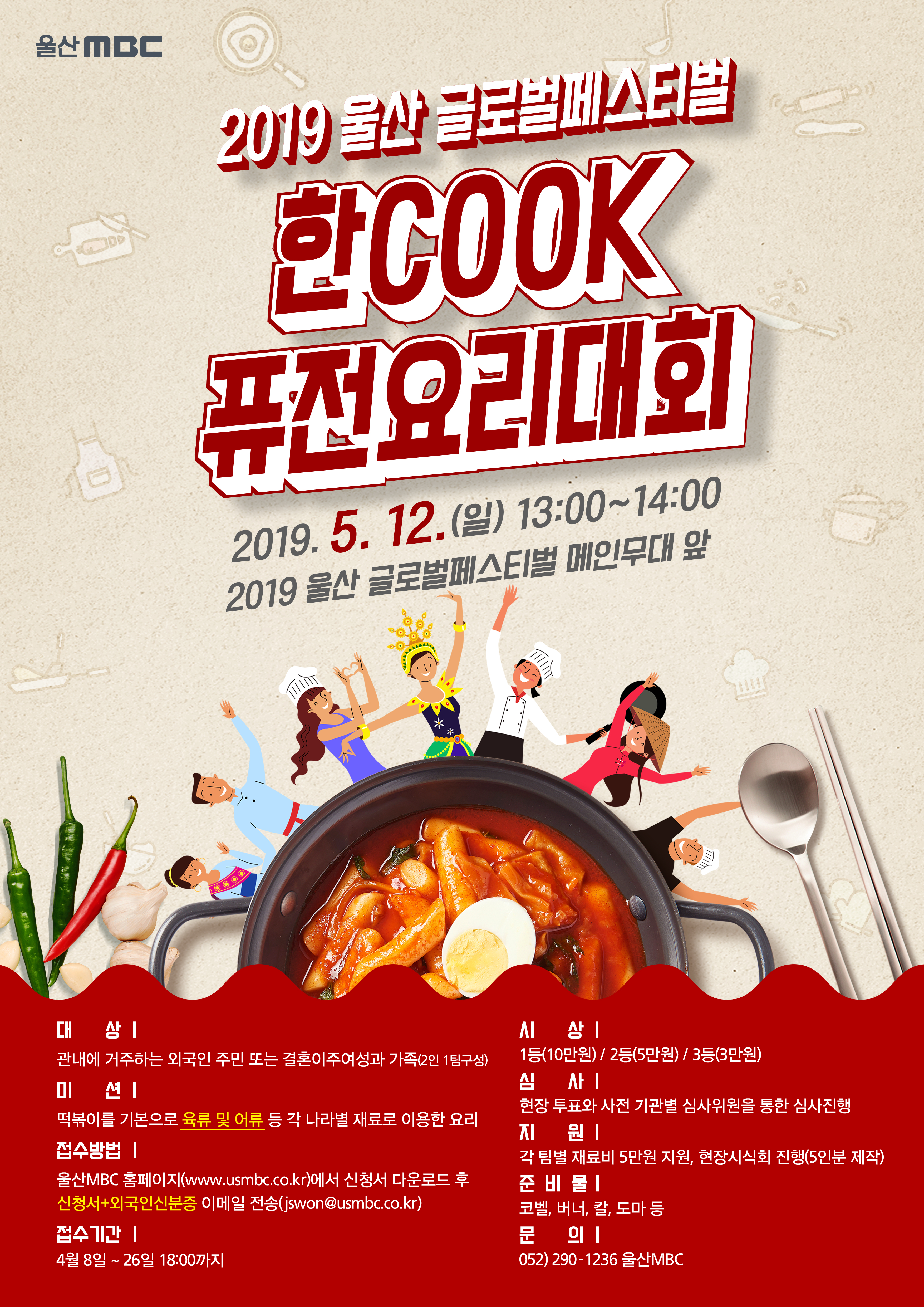 ○ 내 용 : 한국인이 가장 좋아하는 음식 중 손꼽히는 떡볶이를 기본으로 각 나라의 특징을 살릴 수 있는 재료 및 조리법으로 만드는 퓨전떡볶이 요리대회