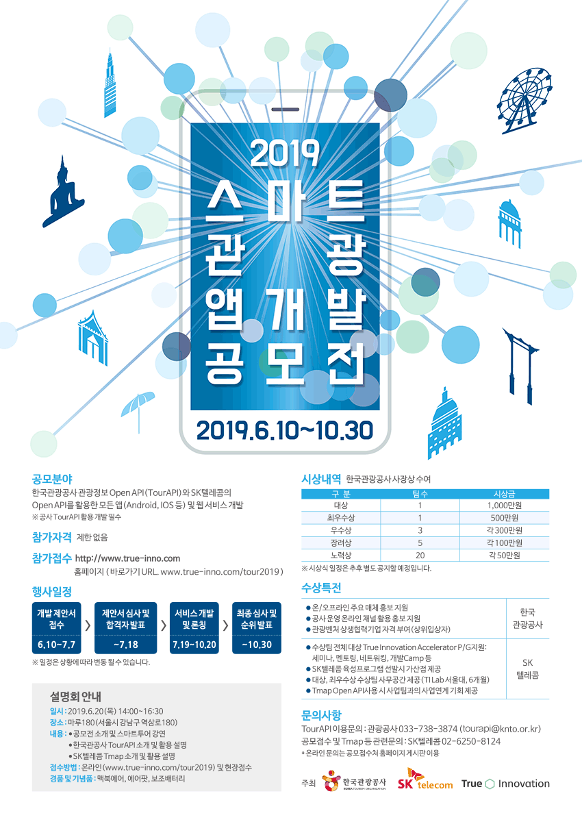 한국관광공사 관광정보 Open API(TourAPI)와 SK텔레콤의 Open API를 활용한 모든 앱(Android, IOS등) 및 웹서비스 개발