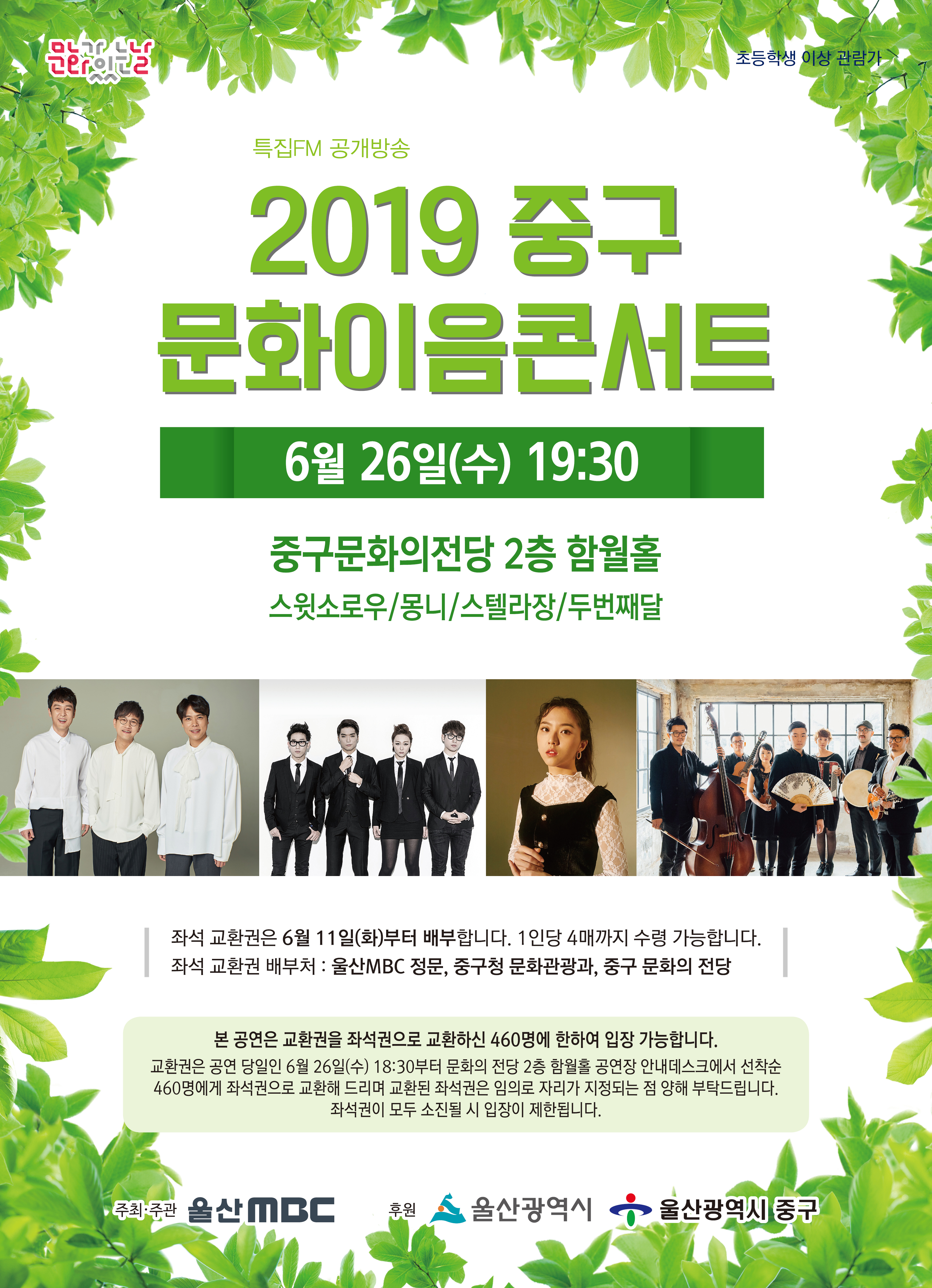 - 좌석교환권 배부처 : 울산MBC 정문, 중구청 문화관광과, 중구 문화의전당