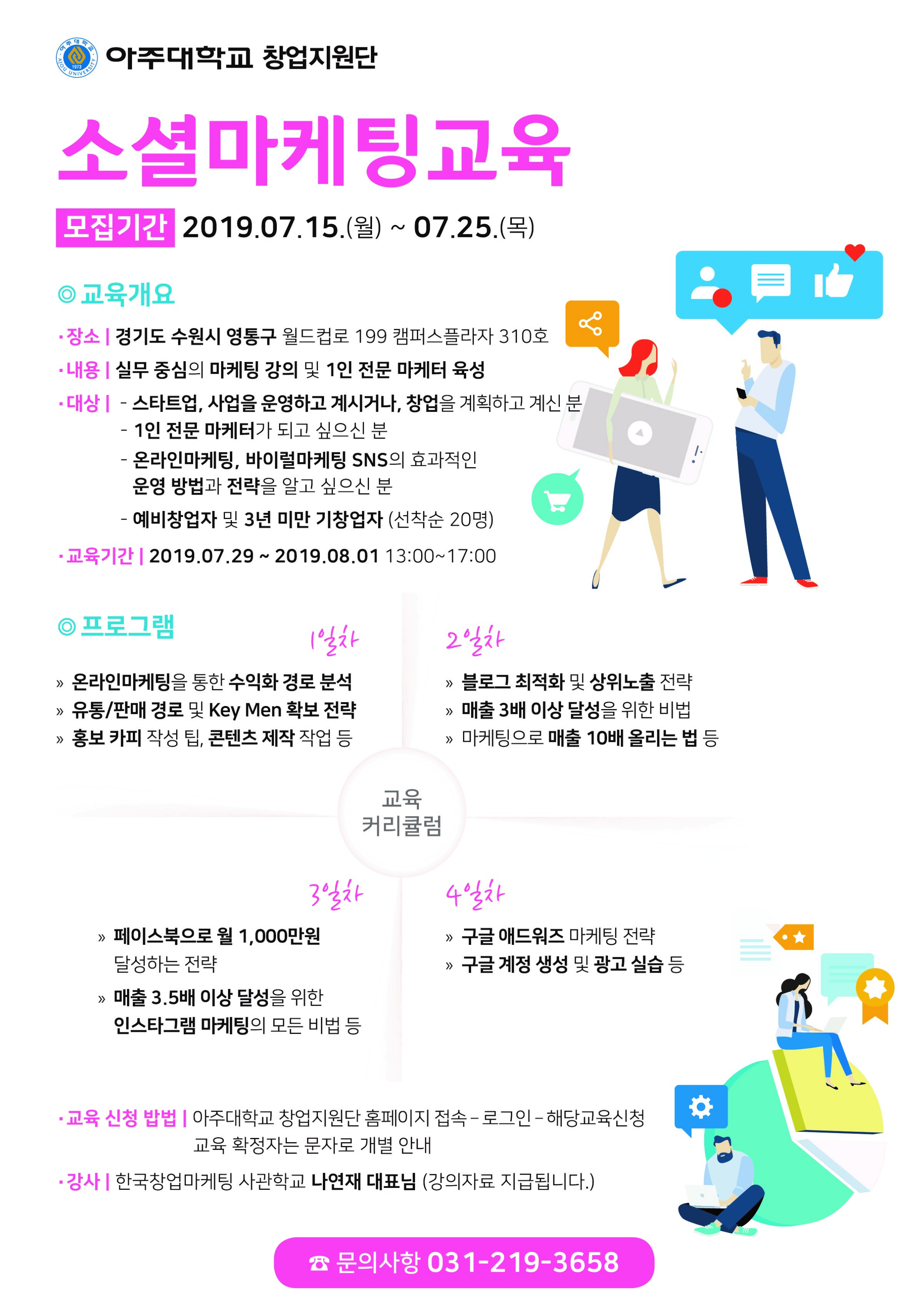 - 아주대학교 창업지원단 홈페이지 ⇒ 지원프로그램 ⇒ 교육 ⇒ 교육 신청 에 들어가셔서 하시면 됩니다^^
