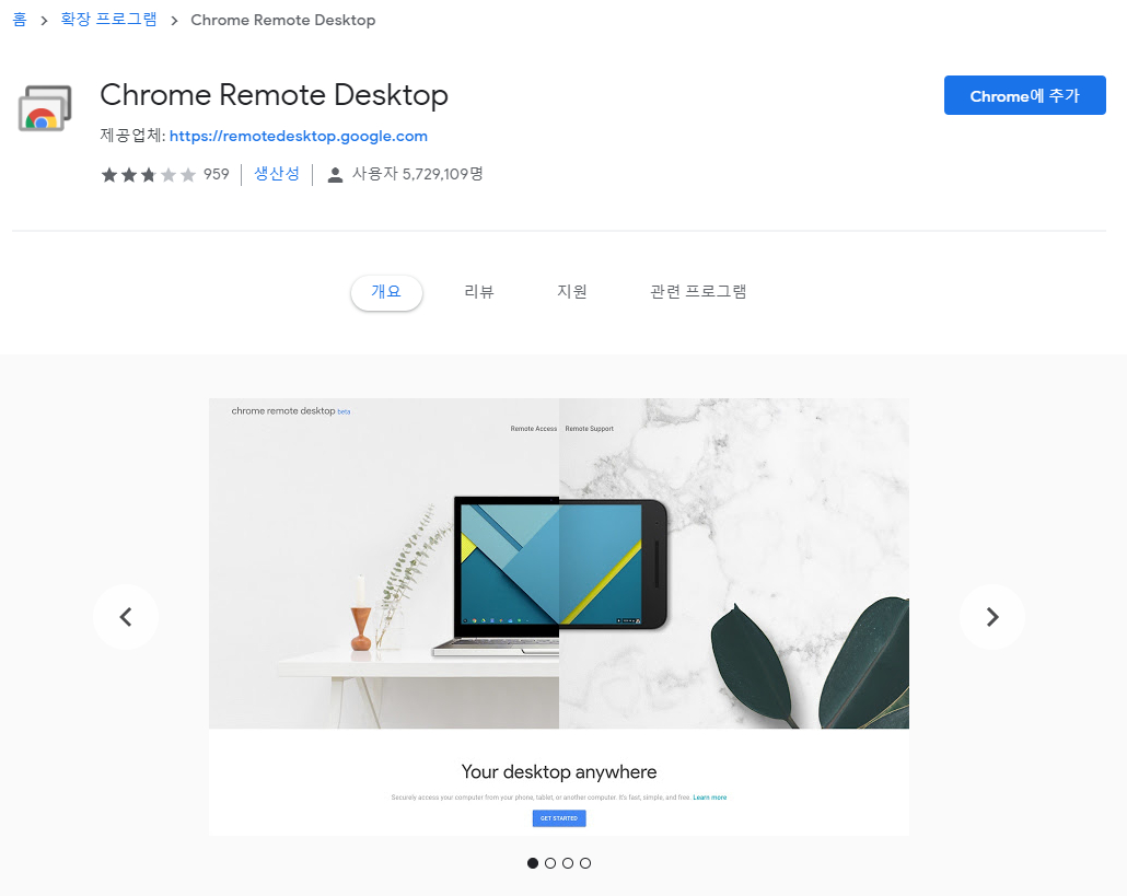 3. 크롬 웹스토어에서 Chrome Remote Desktop 확장프로그램을 추가