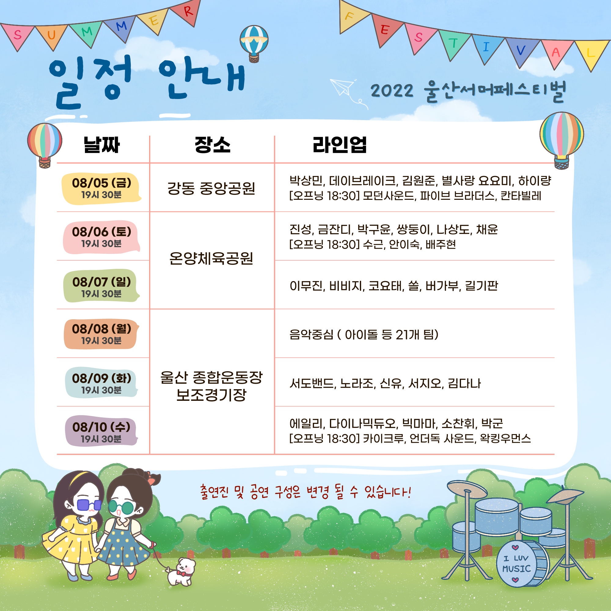"기다리고 기다리던 2022 울산서머페스티벌 라인업 및 전체 일정 공개"